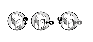6. Mentre si spinge verso l'interno, far scorrere la parte superiore dell’erogatore verso il basso (f). Rilasciare il pulsante. Ora l’erogatore è chiuso.